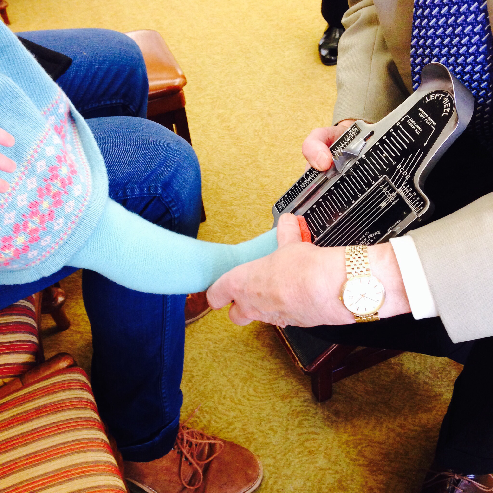 The staff were so gentle with my feet and legs as they put my feet into this contraption with lots of lines and numbers on. Mr French himself greeted us and advised on my measurement I felt honoured to have such attention lavished on little young me. Size 3E…wow!