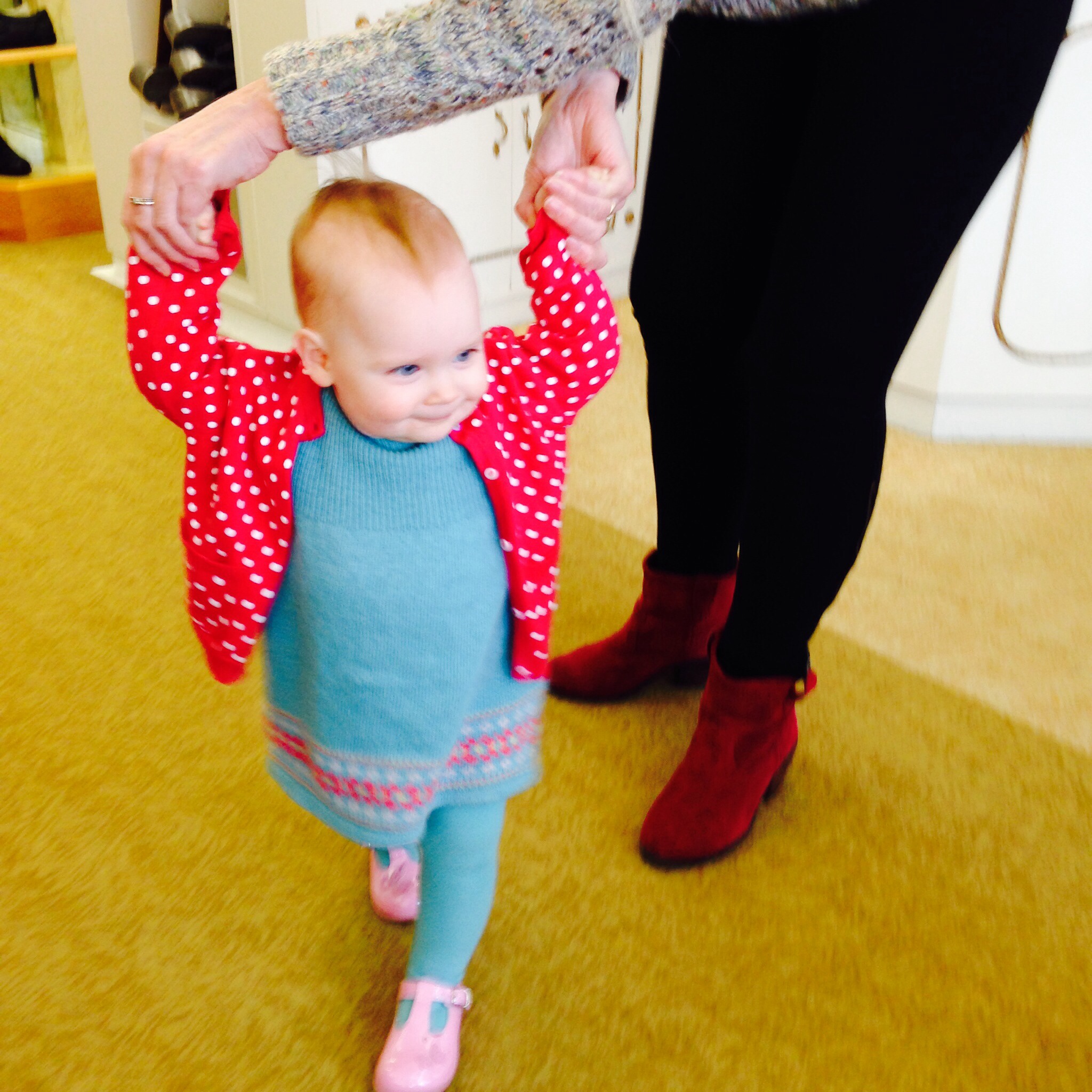 I started to try them on walking around store gazing at my reflection in the numerous mirrors and looking around at all the pretty display lights. I heard my mummy say to grandma ‘is this what it felt like when I tried my wedding dress on?’ All of you staring at me, unsteady on my feet tottering around the shop floor looking in mirrors.