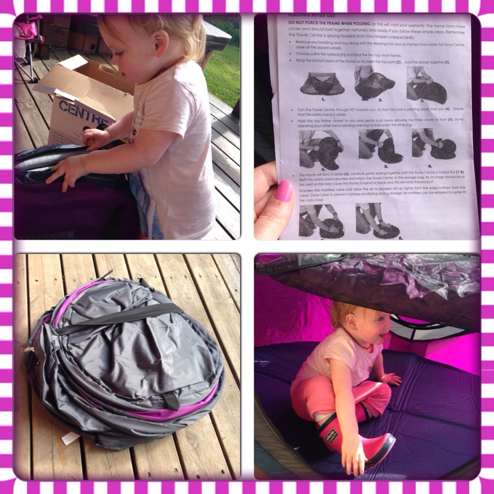 The NSA travel centre was packaged neatly in a large box and came with full instructions, but to be honest my mummy didn’t even need to look at them. It was so simple to put up as it just popped up out of the circular carry case. Must be careful though as it springs to life very abruptly so make sure you stand well back and don’t open it around small children or they might get knocked over with the force!! It’s not heavy and very lightweight.