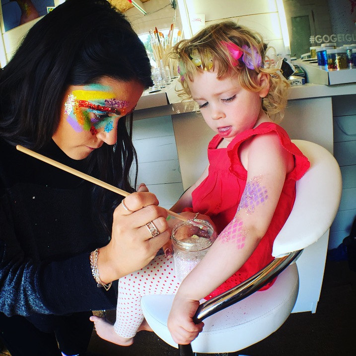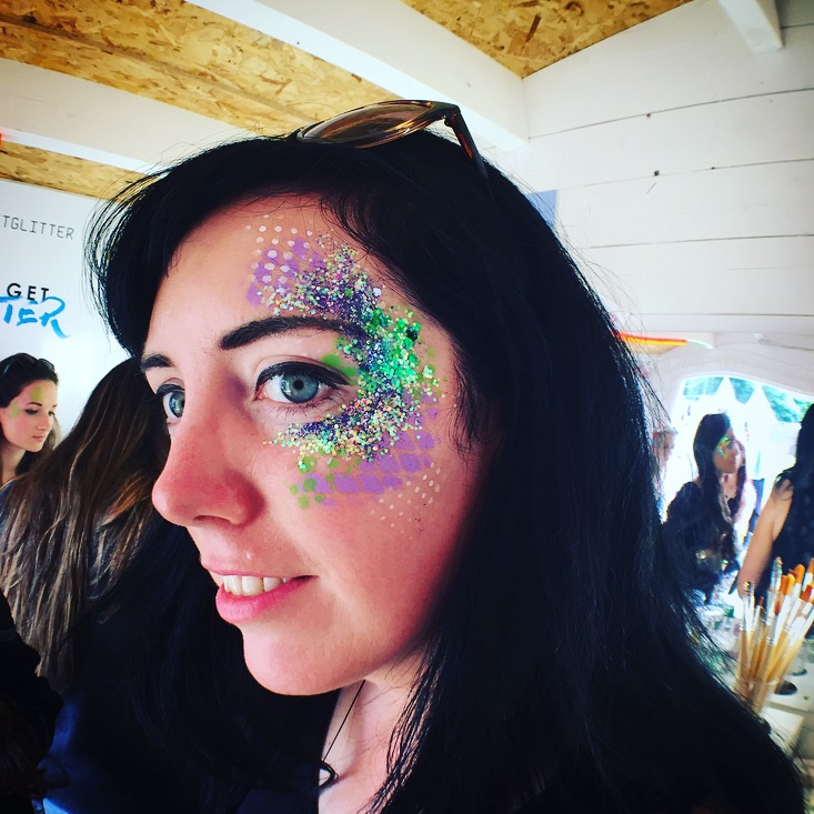 My mummy preferred to have something on her face that was really eye-catching for the festival. So, here our festival look. We were really impressed by how speedy they were and our make-up only took 5 minutes and looked super professional. The GoGetGlitter girls were friendly and talkative and really made the experience worth it. The results were beautiful!