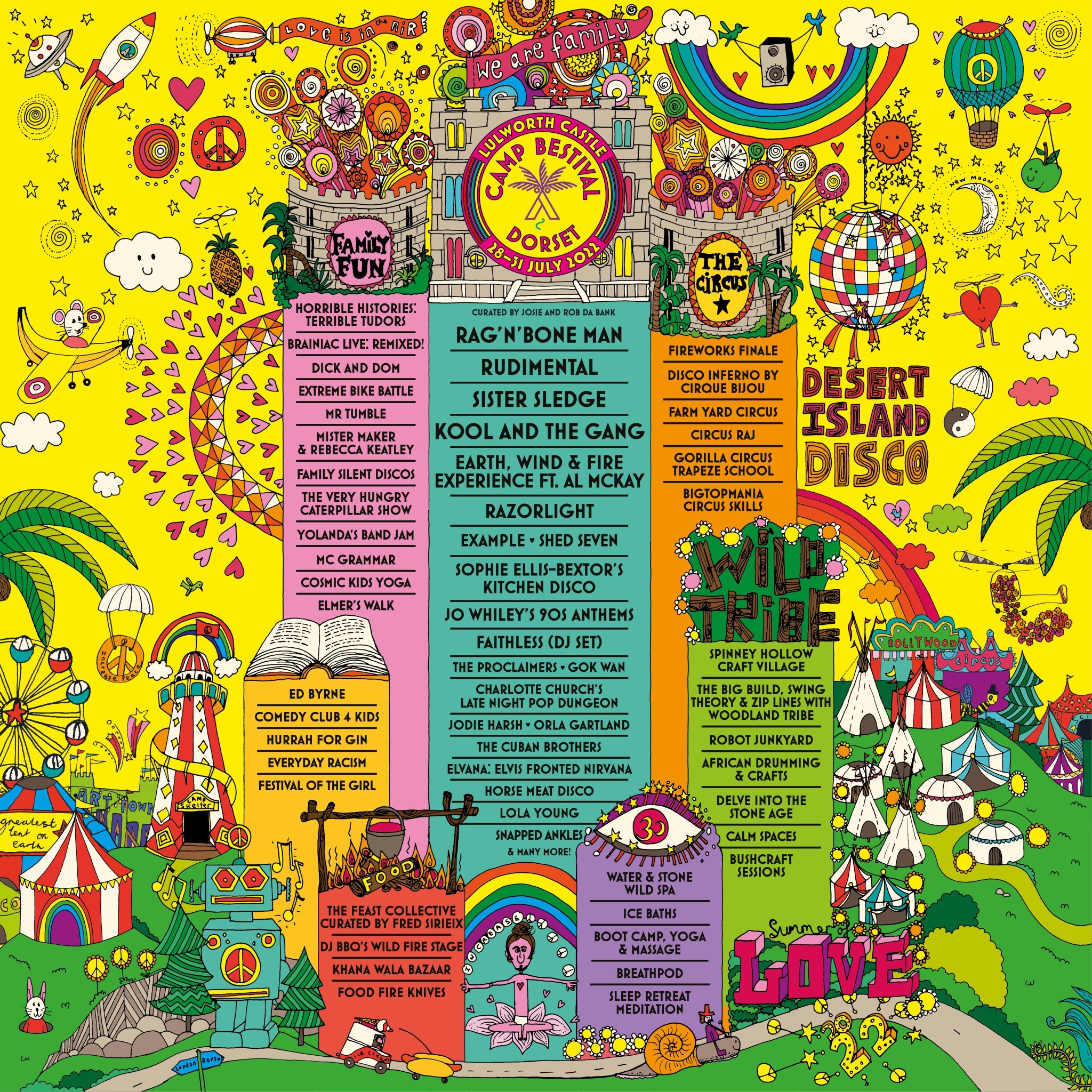 3) The star-spangled line-up: Camp Bestival’s live music selection covers all bases from rock to pop and way beyond, with some brilliant and diverse headliners, Rag’n’Bone Man (Friday), Rudimental (Saturday) and Sister Sledge (Sunday), exciting classic acts, the very best in new music and lots of sing-along favourites too. Whether you’re young or just young at heart, there’s a live act that will get you jumping, so we’ll see you down the front. My daddy is looking forward to seeing Razorlight and Example perform while my mummy can’t wait to see Shed Seven and Faithless (DJ Set).