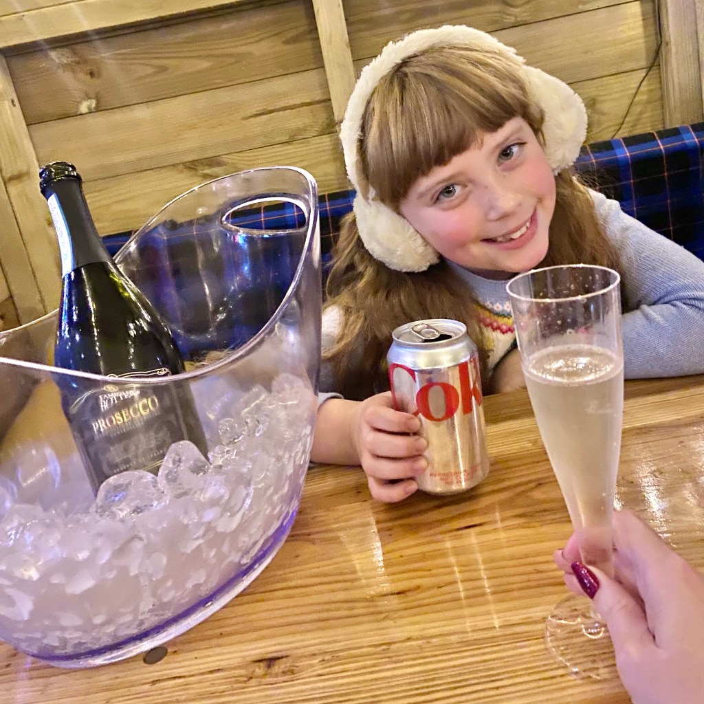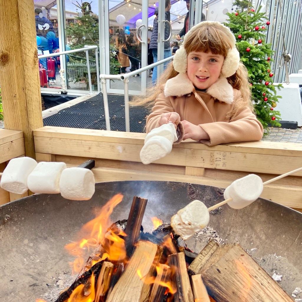 At the end of our skate session we had a chalet booked for drinks at Apres Bar, right outside West Quay on Ice. I toasted marshmallows on the open fire and my mummy warmed up with mulled wine.